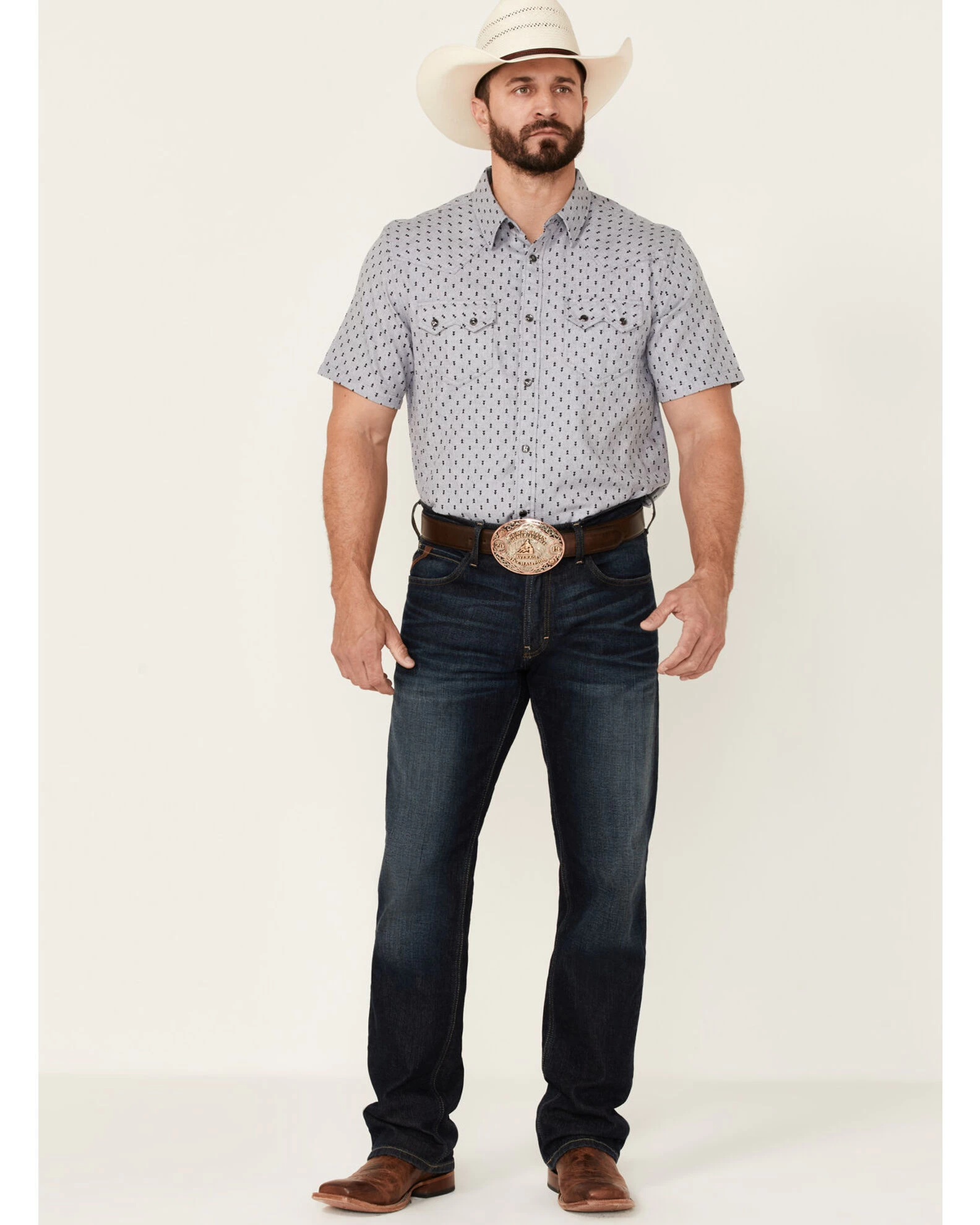 Cody James Men’s Double Arrow Geo Print Short Sleeve Snap Western Shirt