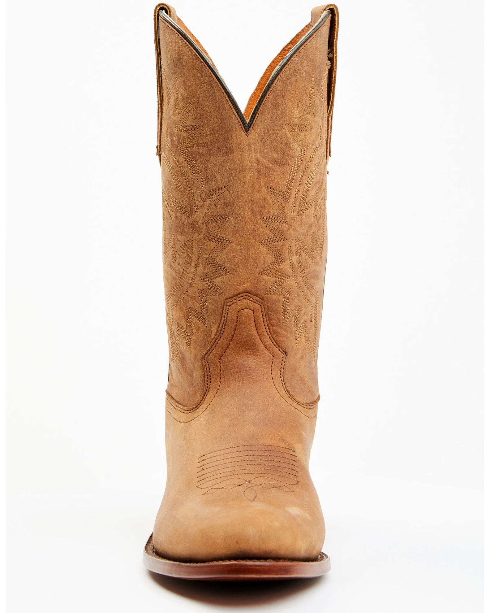 - Solid tan vamp and shaft with western embroidery design